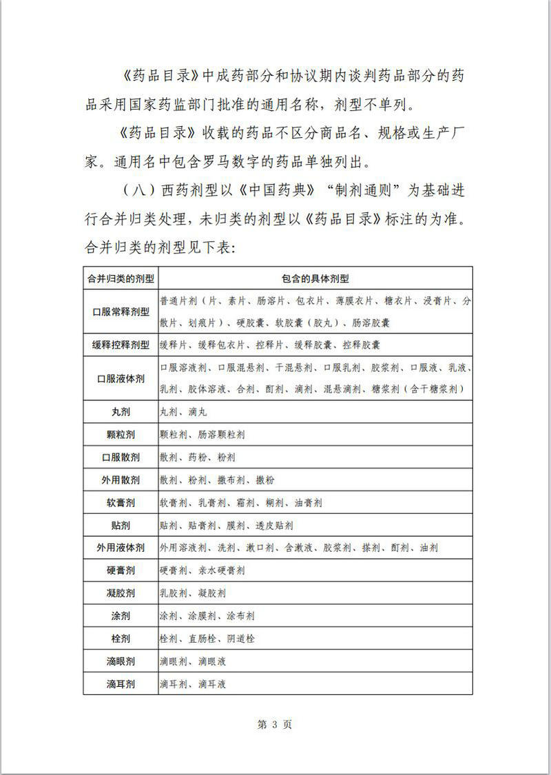 《藥品目錄》中成藥部分和協議期內談判藥品部分的藥品采用國家藥監部門批準的通用名稱,劑型不單列。