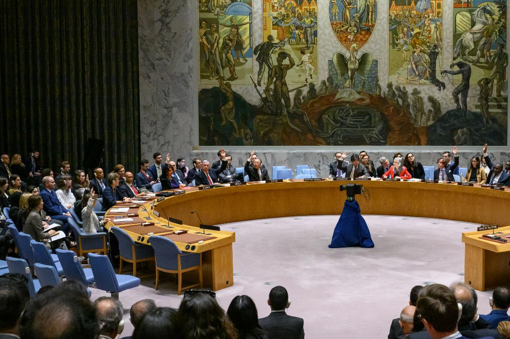 這是12月8日在位于紐約的聯合國總部拍攝的聯合國安理會會議現場。美國當天否決了聯合國安理會一份旨在推動實現巴以人道主義?;鸬臎Q議草案。新華社發(聯合國供圖/洛伊·費利佩攝)