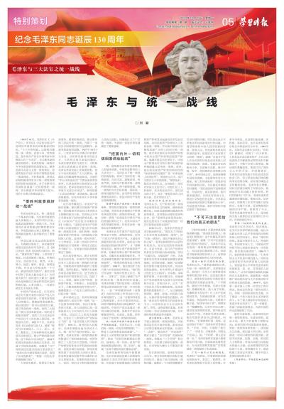1939年10月,毛澤東在《〈共產黨人〉發刊詞》中總結中國共產黨領導中國革命的經驗教訓時指出,“十八年的經驗,已使我們懂得:統一戰線,武裝斗爭,黨的建設,是中國共產黨在中國革命中戰勝敵人的三個法寶”。在長期革命和建設實踐中,毛澤東將統一戰線作為中國革命勝利的重要法寶,繼承發展馬克思主義統一戰線理論,創造性提出并實行具有中國特色的統一戰線理論、方針和政策。深刻認識和把握毛澤東關于統一戰線的理論研究和實踐探索,對于在新時代鞏固和發展最廣泛的愛國統一戰線、奮力推進中華民族偉大復興,具有十分重大的現實意義。