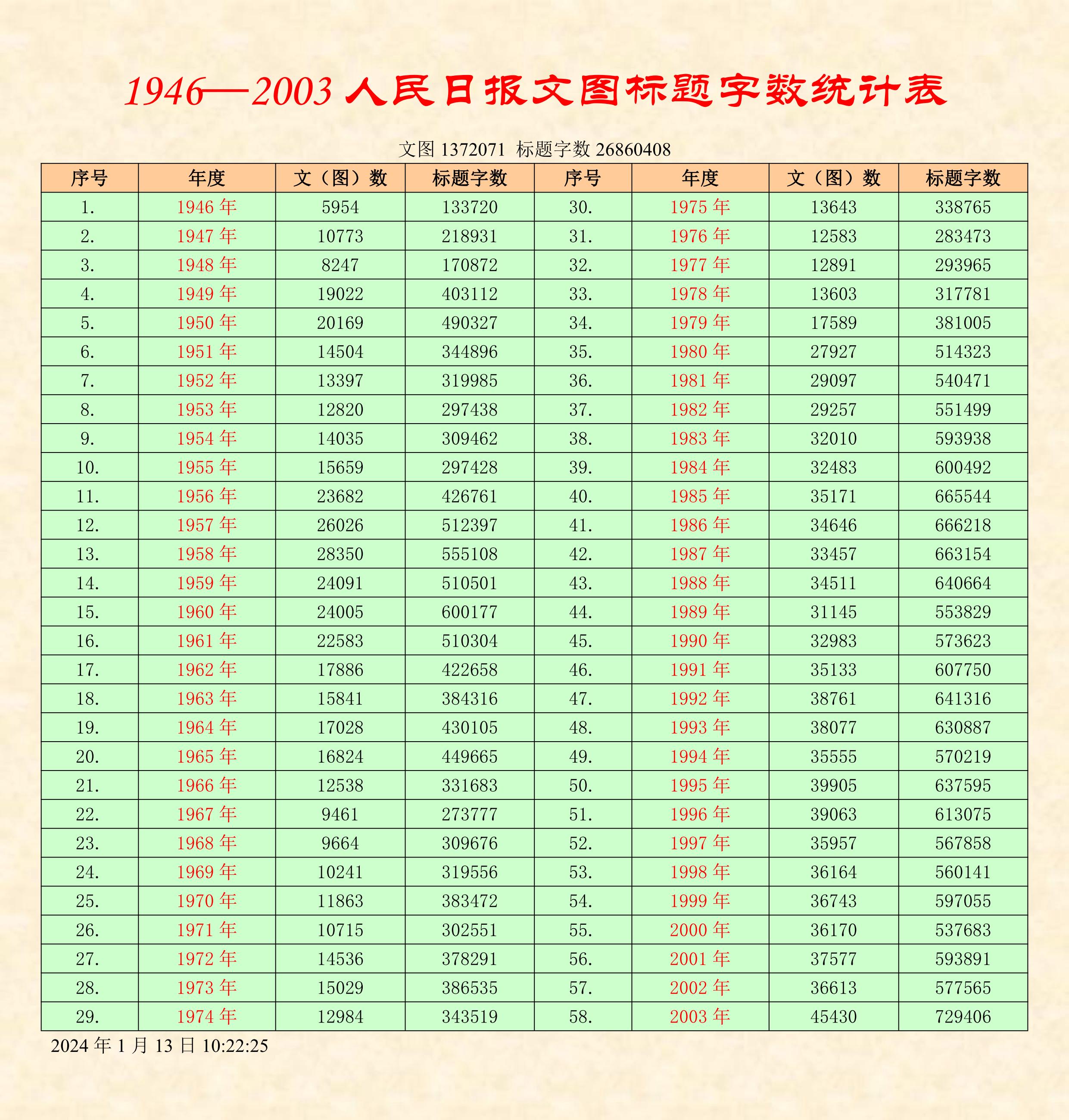 開年十二天,用二百四十個小時,編輯了有生以來最大的電子文檔,1946-2003五十八年的人民日報,單單標題字數就在兩千六百余萬字,可謂是天下最大的大了!