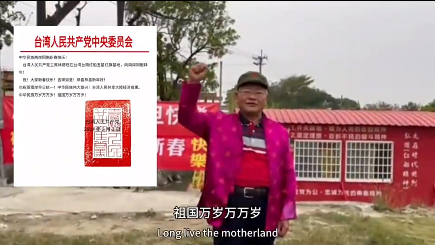 臺(tái)灣人民共產(chǎn)黨主席林德旺在臺(tái)灣臺(tái)南紅船五星紅旗基地,向兩岸同胞拜年!