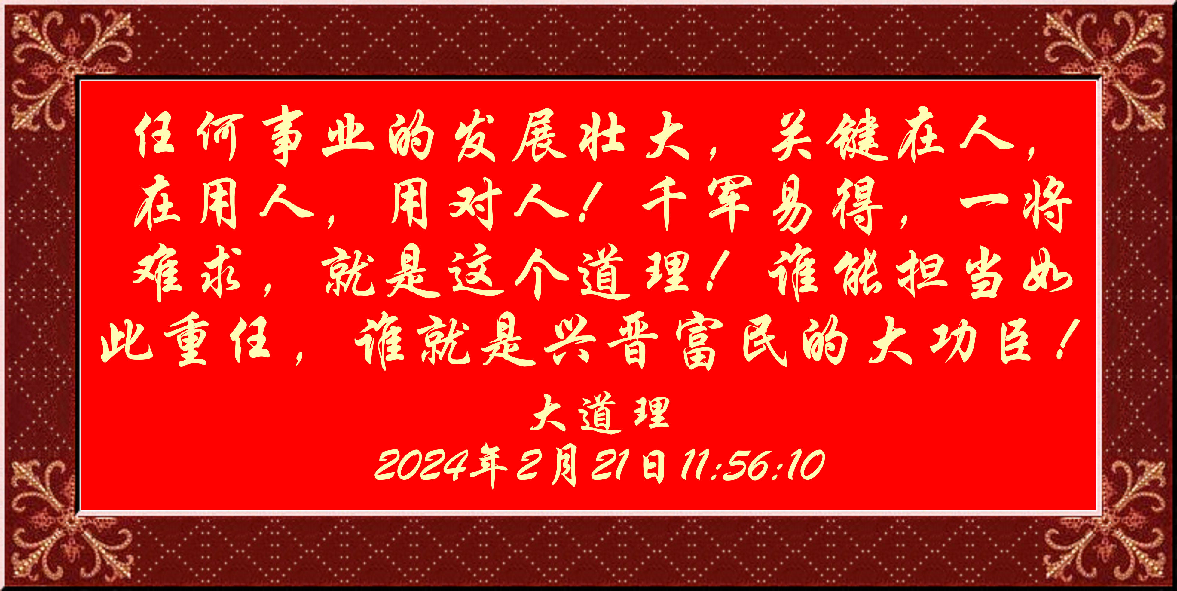 任何事業的發展壯大,關鍵在人,在用人,用對人!千軍易得,一將難求,就是這個道理!誰能擔當如此重任,誰就是興晉富民的大功臣!