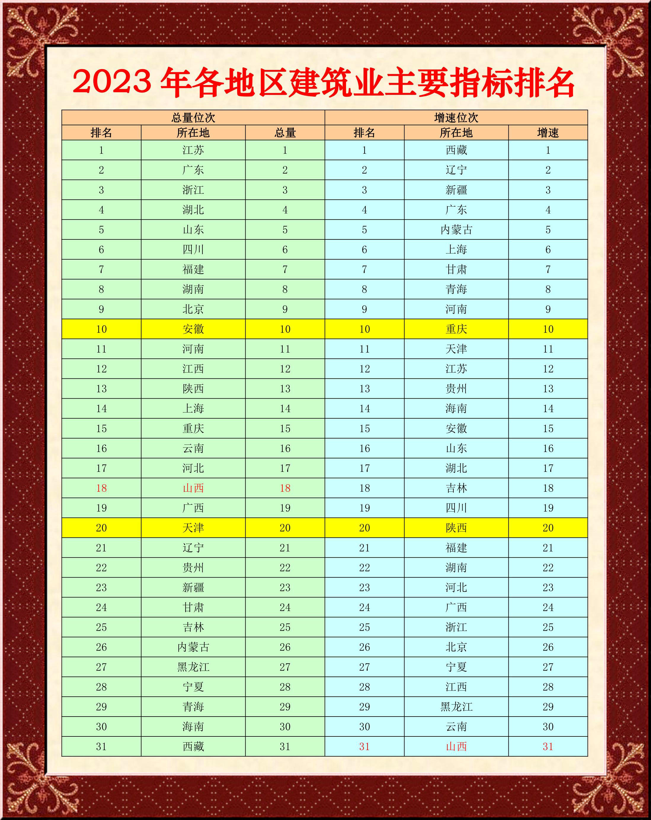 昨天,中國建筑業協會發布《2023年建筑業發展統計分析》,山西省建筑業主要指標增速全國墊底,總量排全國第18位,居全國中下水平。這個結果是意料之中的結果,更深層次又反映出什么問題呢?三個字:不重視!