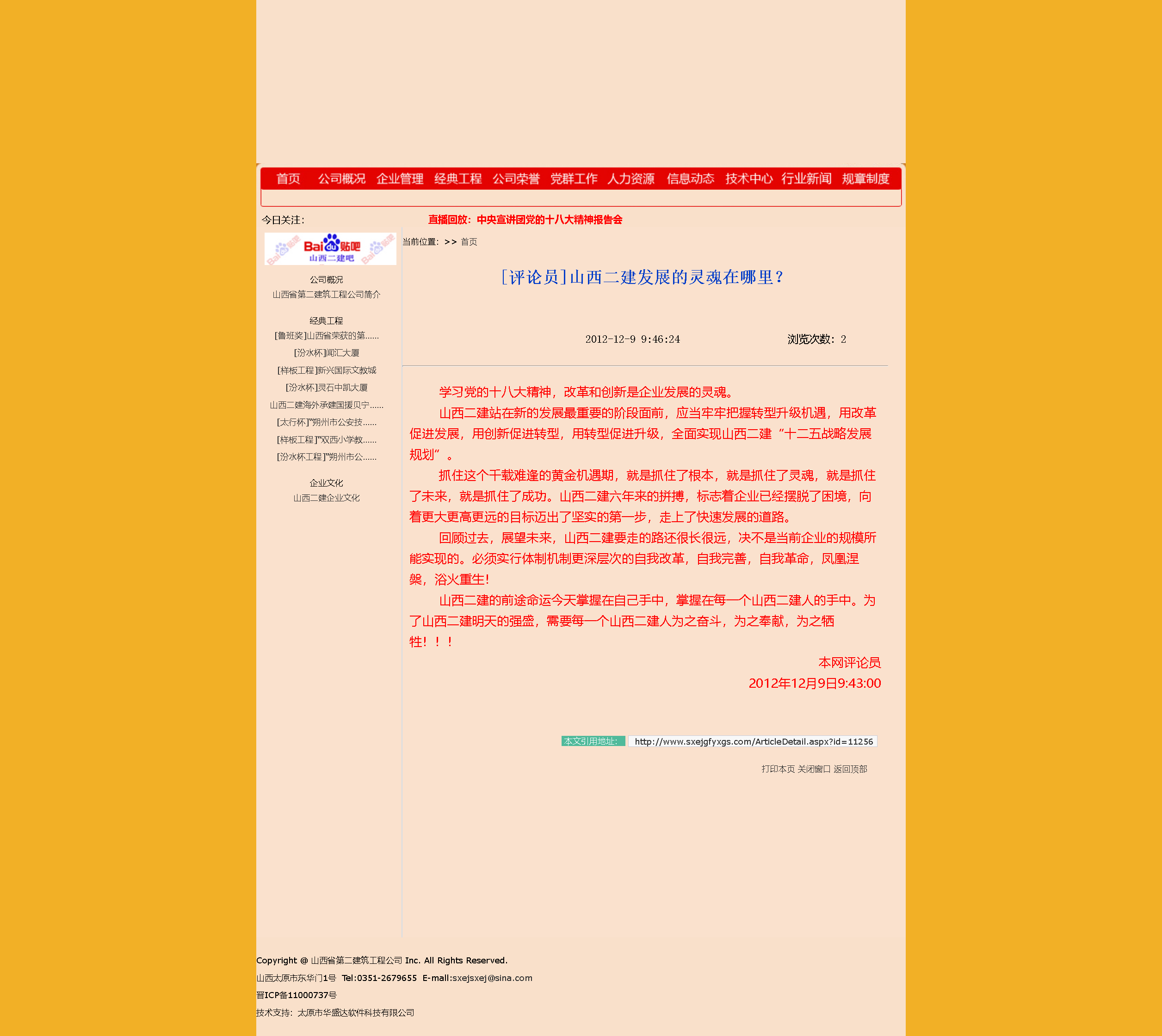 這是十二年前我對山西二建未來發展的三百字文章。