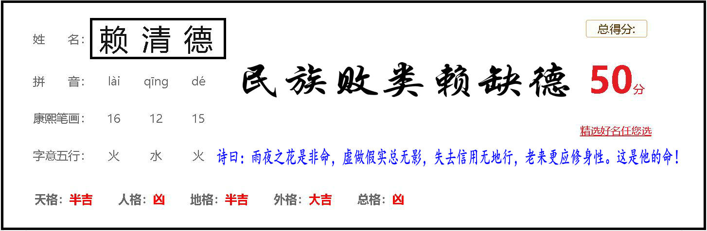 詩曰:雨夜之花是非命,虛做假實總無影,失去信用無地行,老來更應修身性。這是他的命!