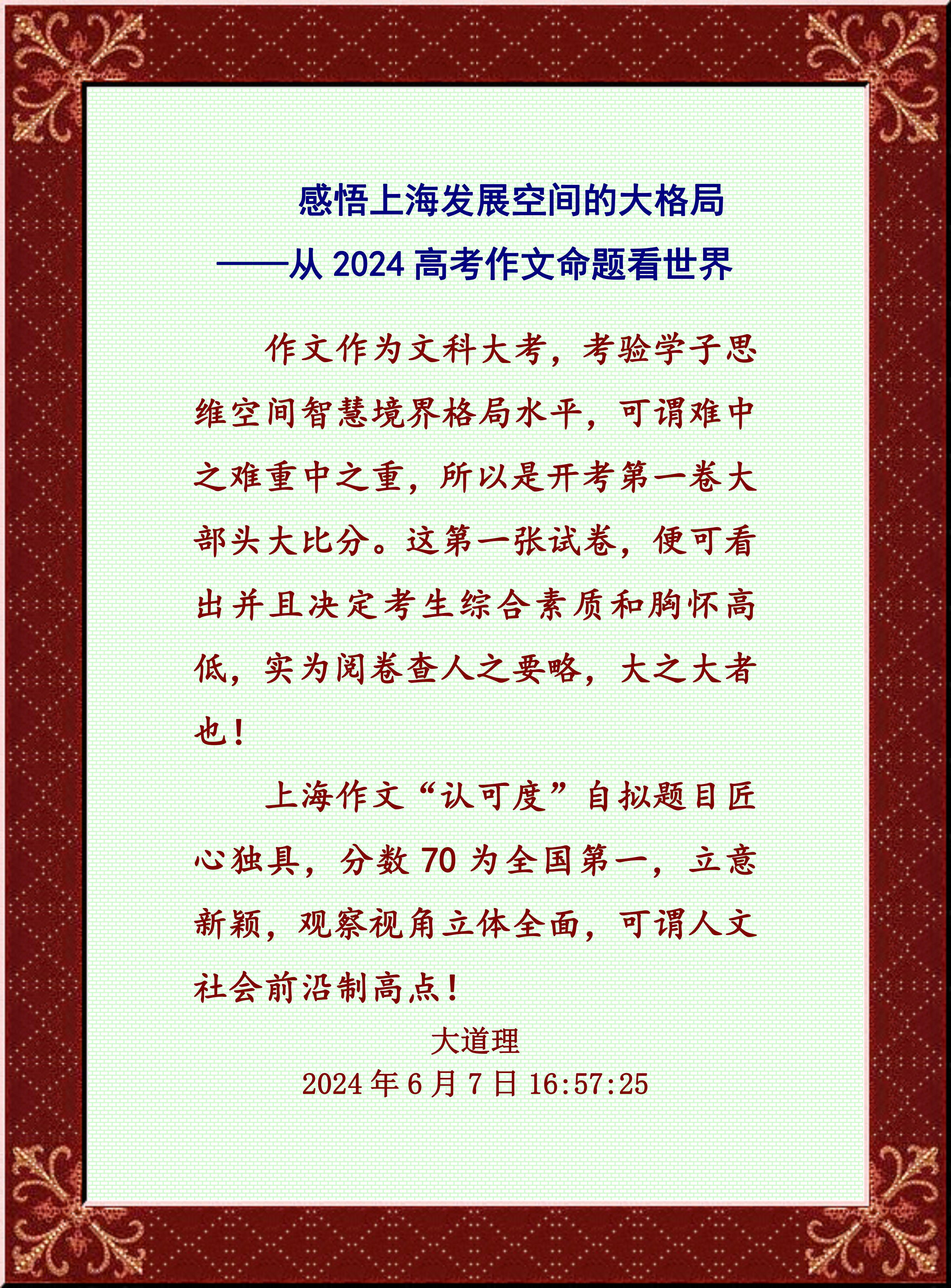 上海作文“認(rèn)可度”自擬題目匠心獨(dú)具,分?jǐn)?shù)70為全國第一,立意新穎,觀察視角立體全面,可謂人文社會前沿制高點(diǎn)!